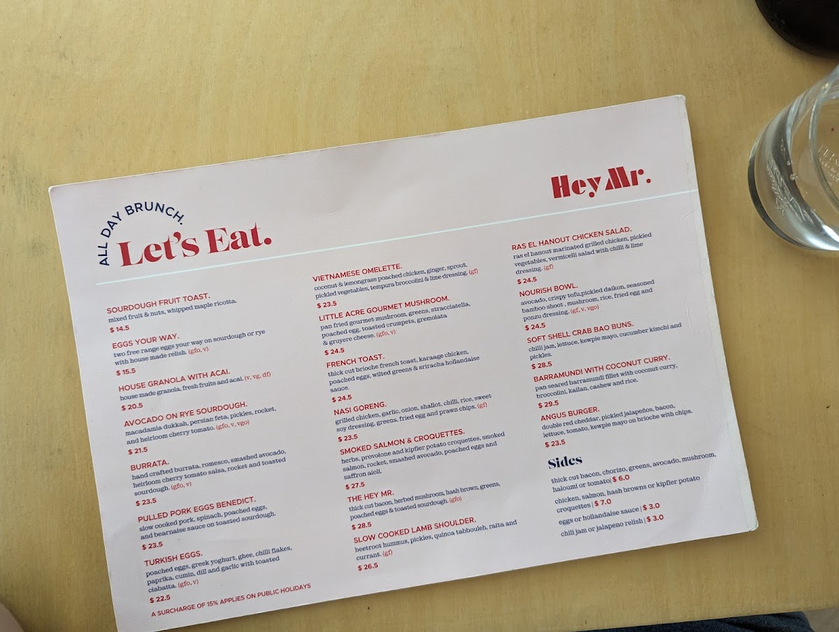 Welcome to Hey Mr. New Farm, an unmissable cafe nestled in the vibrant heart of New Farm, Queensland. Known for its all-day brunch offerings, the menu is a delightful blend of fresh ingredients and creative dishes. Breakfast enthusiasts can revel in choices like Sourdough Fruit Toast, Avocado on Rye Sourdough, and the indulgent Croffle & Southern Fried Chicken. Each bite is crafted to excite the palate and satisfy diverse cravings.